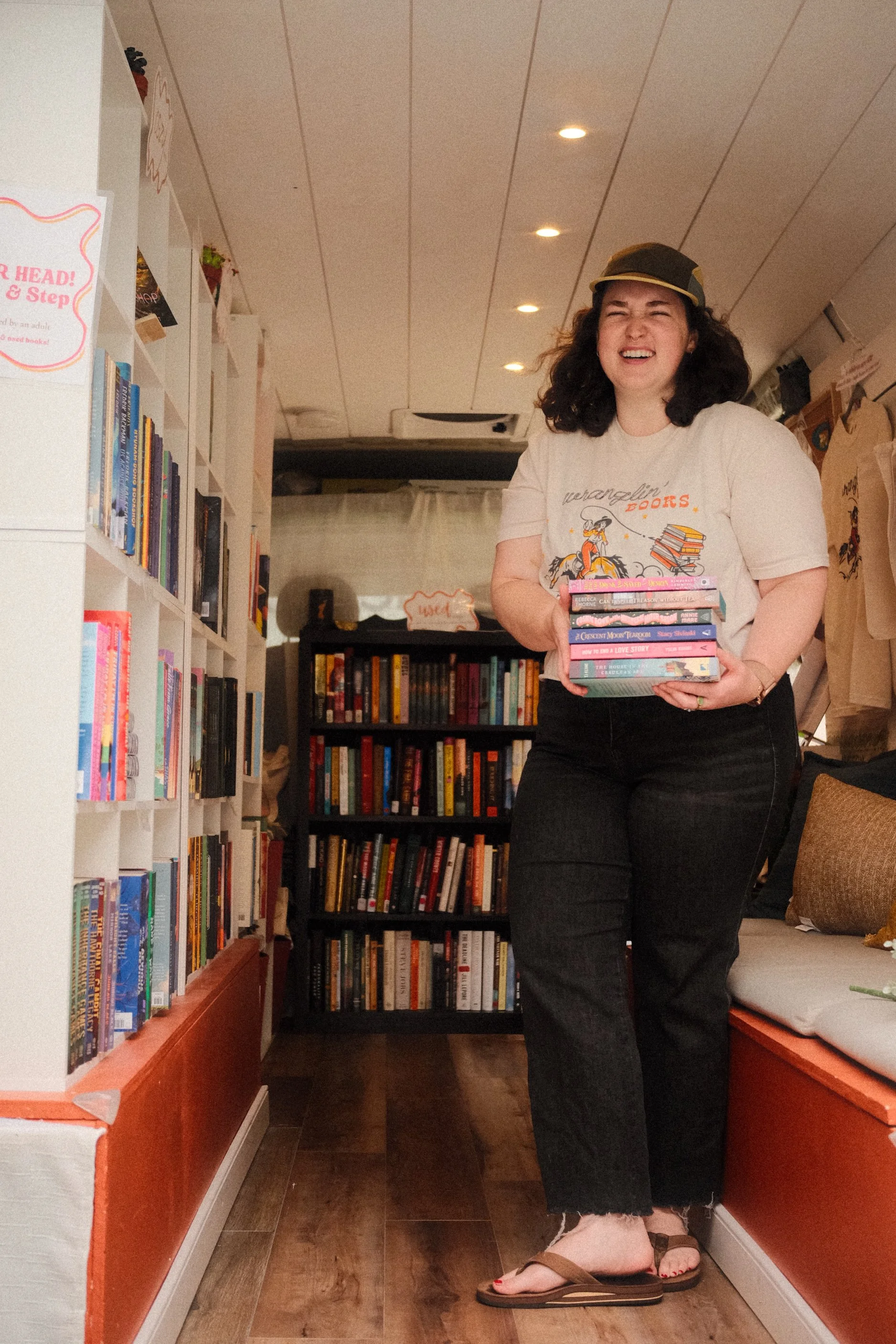 We are a bookstore on wheels! Our store is built within a Ram Promaster van and you can walk up the stairs and actually shop inside of it!